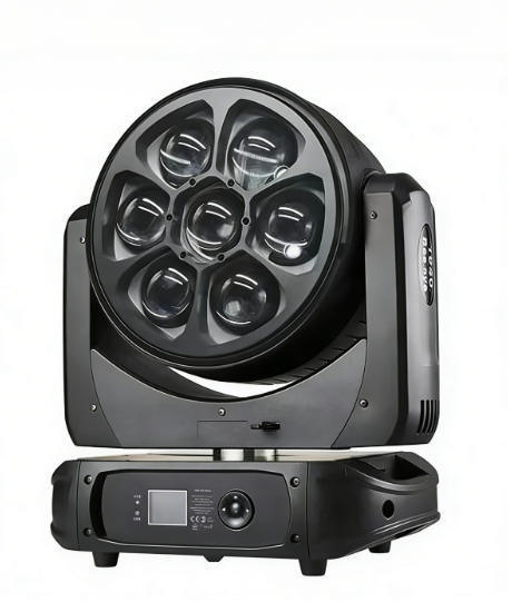 LED-wasbewegend koplamp van professionele kwaliteit met 7 krachtige RGBW-LED's met geavanceerde zoommogelijkheden en uitgebreide besturingsmogelijkheden voor toepassingen op het toneel.
